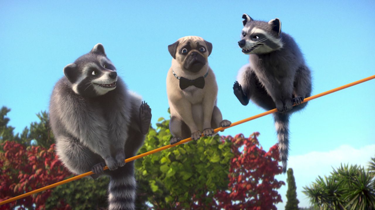 Забавные приключения мопса Майка и озорных енотов.