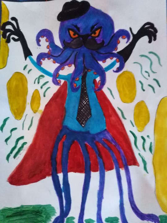 Это Осмизлодей. Его супер способность в том, что он выпускает усыпляющие чернила, и переносит уснувшего противника через портал на свою планету Осми. Берегись Бен 10.