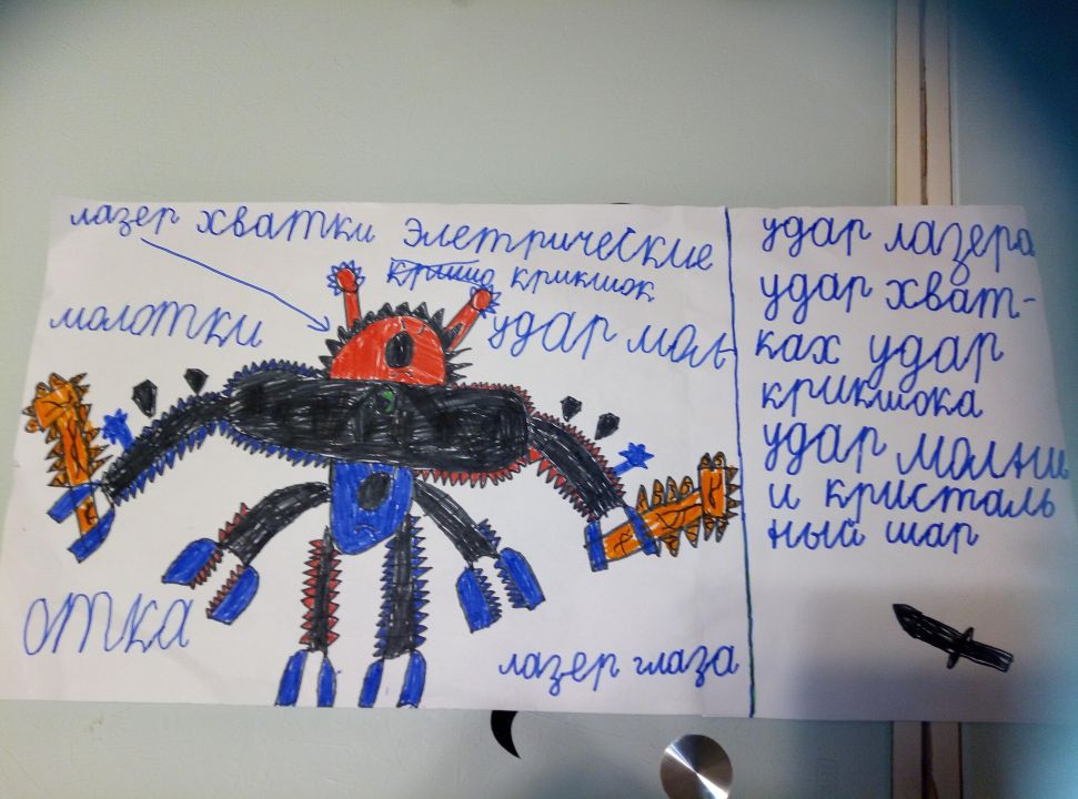 Моего злодея зовут Крикшок. У него есть удар лазера, удар хватках, удар Крикшок, удар молнии кристальный шар. Он готов победить ben10