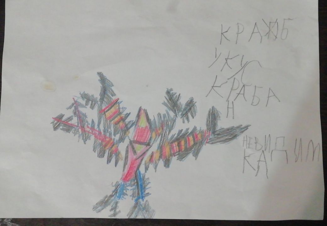 Злодей по имени Краб. У него есть суперспособности:-"укус краба" и "атака невидимки"