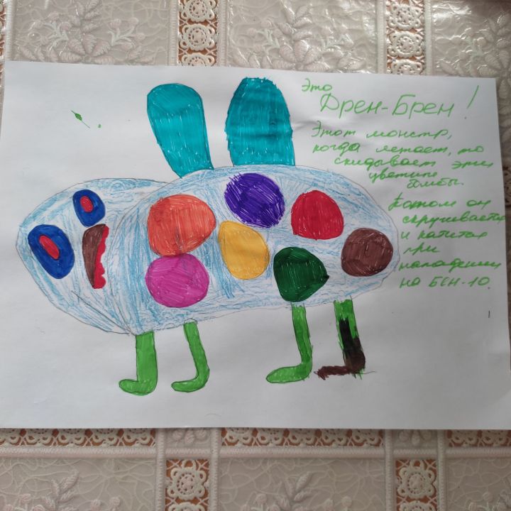 Это Дрен-Брен. Это летающий монстр. При полёте он скидывает эти цветные круглые бомбы. Потом скручивается и катится при нападении на Бен-10