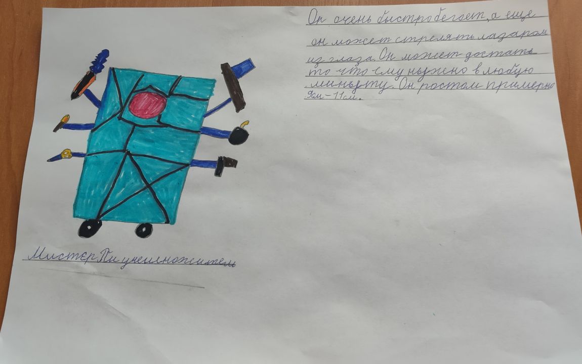 Мистер Пи уничтожитель. Он очень быстро бегает, а ещё он может стрелять лазером из глаза. Он может достать то, что ему нужно в любую минуту. Он ростом примерно 9-11см.