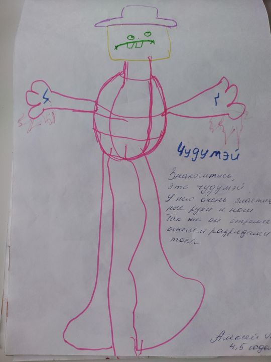 Его зовут чудумэй. У него очень эластичные руки и ноги. Так же он стреляет огнем разрядами тока.