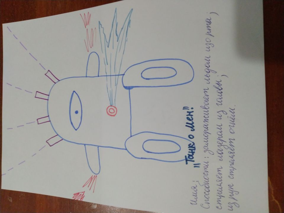 Танк о мен. Стреляет лазером из пушек на голове. Из рук вырываются пламя огня. Замораживает своим дыханием.