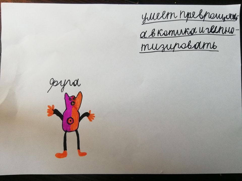 Его зовут Фуга. Он умеет превращаться в котика и гипнотизировать.