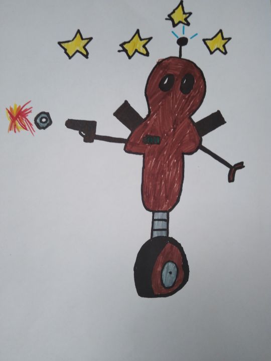 Он умеет стрелять из пистолета гайками которые потом взрываются.