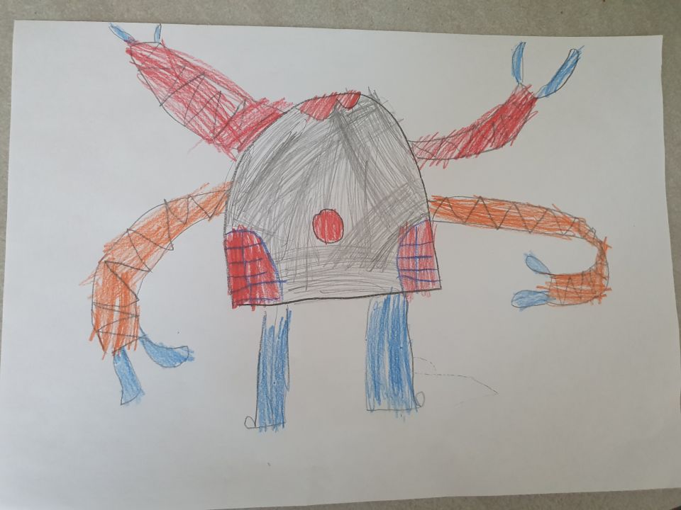 Моего злодея зовут Джет-Рыкс. У него четыре клешни. И своими клешнями он может схватить противника и отбросить очень далеко!