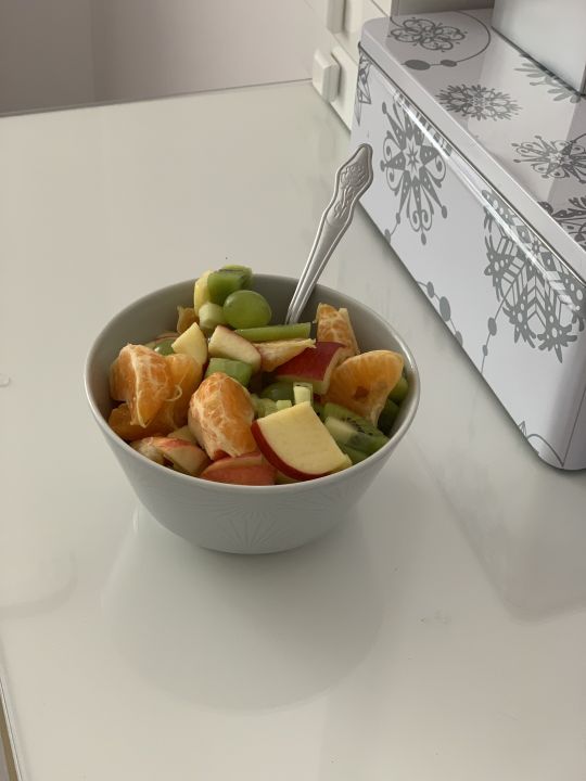 Берём любимые фрукты: мандарины, виноград, киви и яблоко.