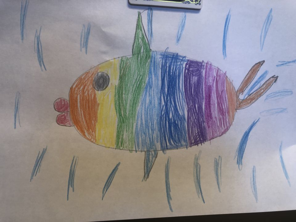 Это радужная рыба, которая попала в волшебную воду и стала разноцветной
