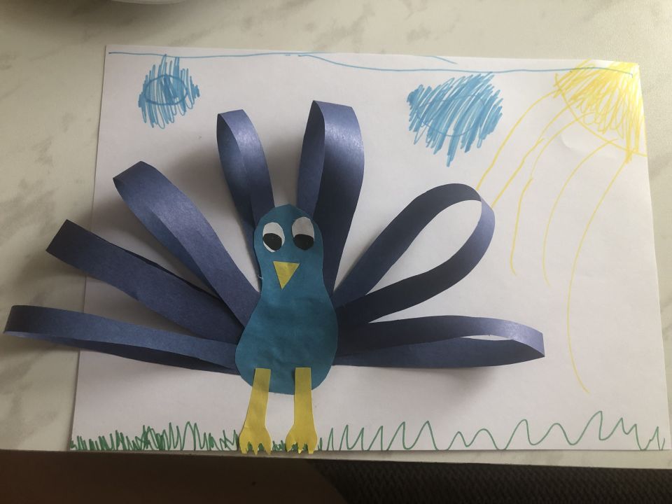Это павлин Его зовут чик-чирик Он очень любит валяться в травке и распускать хвостик Осипова Ксюша 5 лет