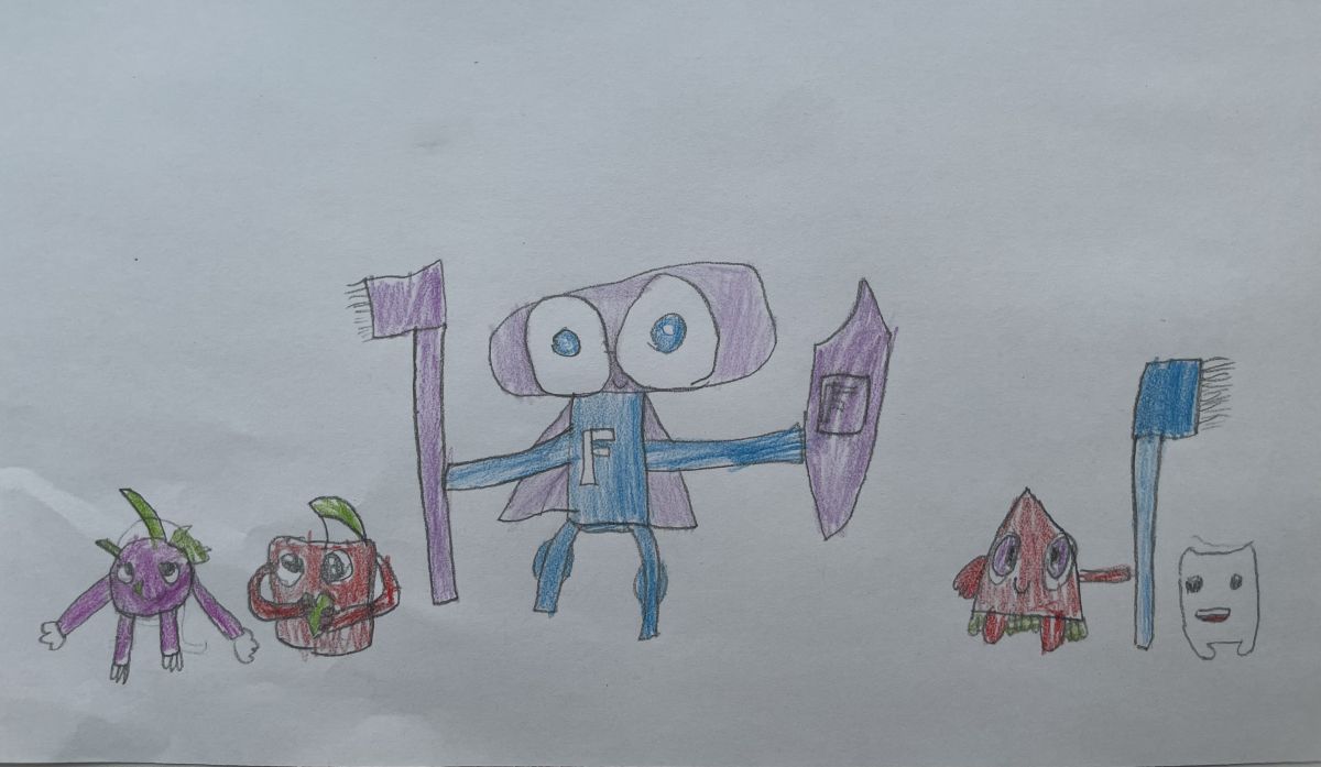 Фторид борется с кариесом, а поддерживают его друзья клубничка, жвачка и яблочко.