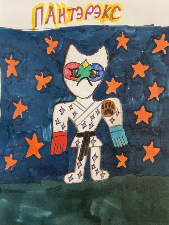 Моего героя зовут Пантэрэкс! Мой герой Гуджисту Пантэрэкс смелый, благородный и отзывчивый ! Он всегда придёт на помощь в трудный час. Наполнение моего героя глюкозный сироп с блестящими звёздочками ! Гу атака огненно - ледяная ! В одной руке у Пантэрэкса ледяная атака , а во второй огненная атака!