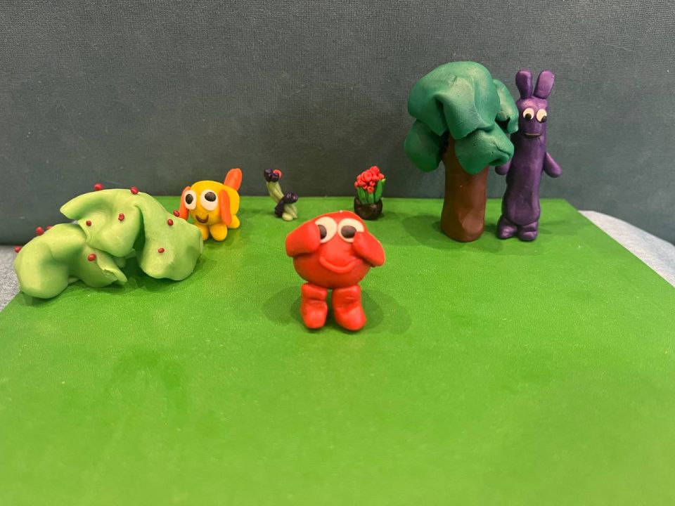 Друзья играют в прятки на полянке. Им очень весело и каждый нашёл себе место, где можно спрятаться.