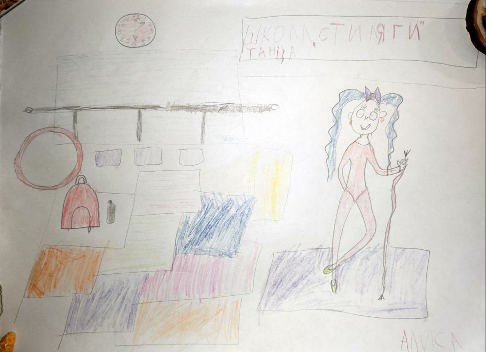 привет,я Алиса!мне 6 лет,я с 3лет занимаюсь танцами.Я люблю танцы и выступать на конкурсах,на рисунке я показала себя,мы делаем растяжку,занимаемся у станка,крутим колеса .Хочу дружить с Донатиной,она принцесса и у нее розовые волосы и красивые платья.
