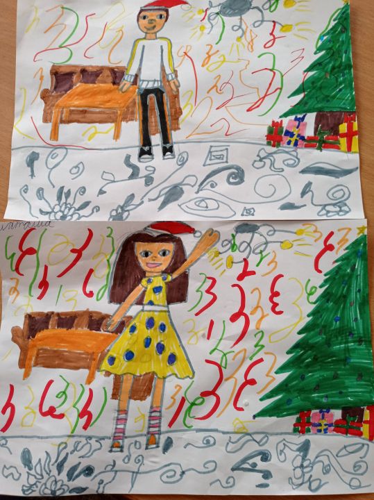 На рисунках я и мой брат Семён! Мы ждём деда Мороза, и оделись в наши любимые наряды!