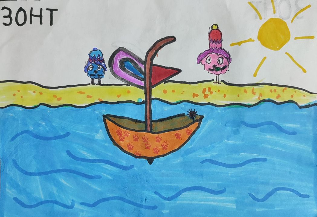 Этот кораблик в виде зонта. Он плывёт по по мягким волнам. Спешит прокатить свою подружку Энн и её младшего братика Бу.
