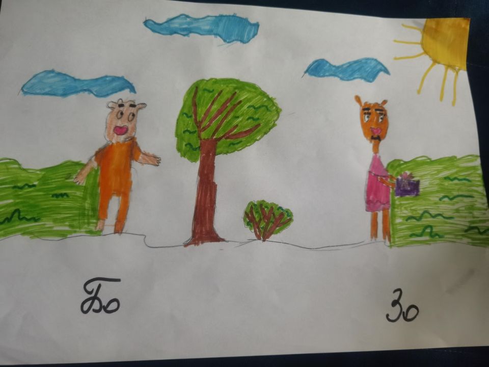 Мне нравится герои Зо и Бо, потому что они дружные. Помогают своим родителям и друзьям. Уважают друг-друга. На рисунке Бо и Зо несут подарок Серому на день рождения!