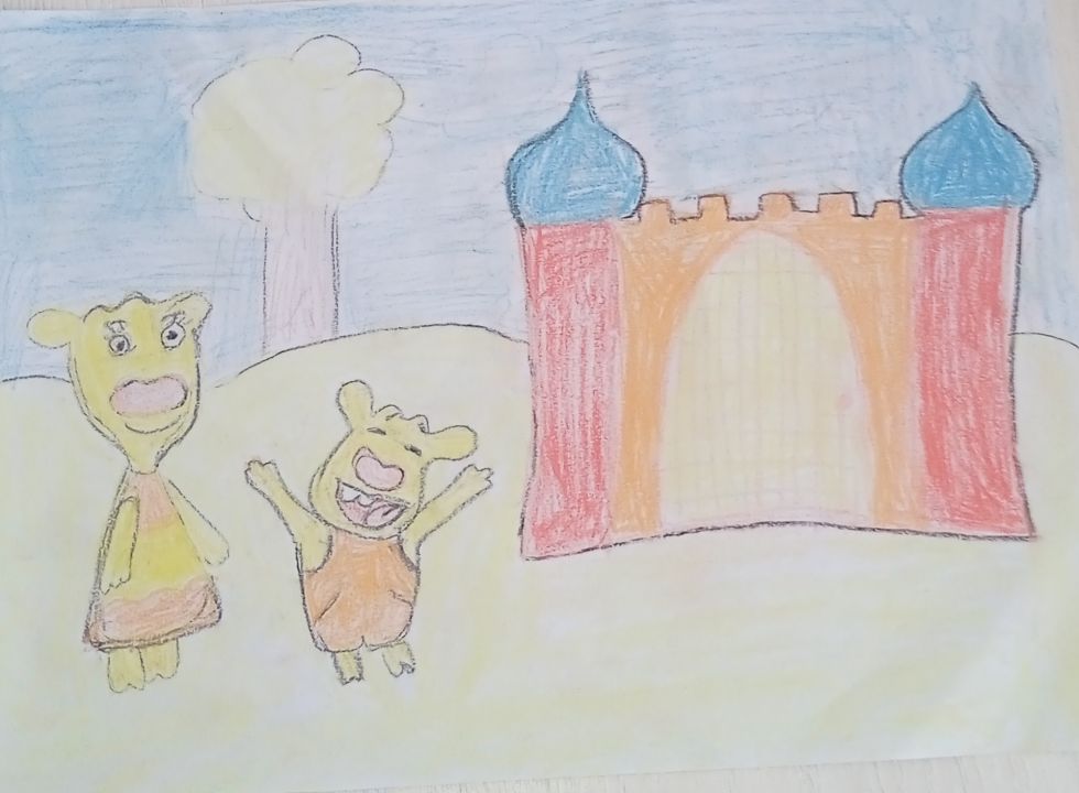 Я нарисовала Борю И Зою стоящих у замка, его я придумала сама. Бо и Зо у меня получились прямо как в самом мультике. Мне очень нравится этот рисунок.
