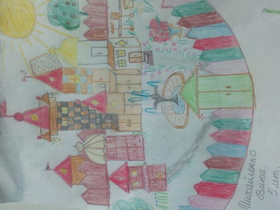 Автор работы: Михайленко Виктория, 5лет "Сказочный замок" Рисунок выполнен цветными карандашами.