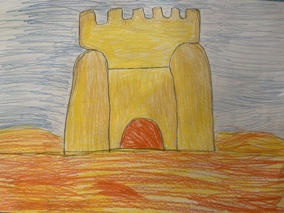 Представлена работа мальчика Миши из города Курска. Картина называется «Песочный замок».