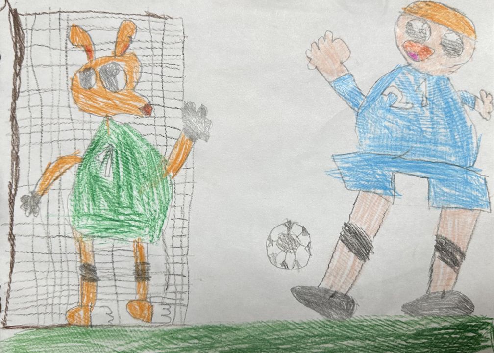 Шарику очень нравится ловить и отбивать мячи на позиции вратаря. А Дядя Федор очень любит бегать и играть с мячом. Поэтому они так любят футбол!