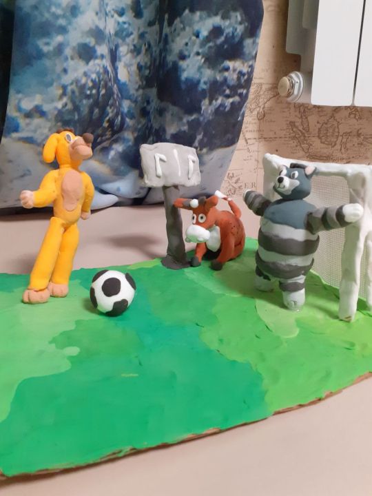 Шарик - мой любимый герой "Простоквашино". Он любит играть в футбол, как и я. А ещё он тренирует Матроскина и Гаврюшу.