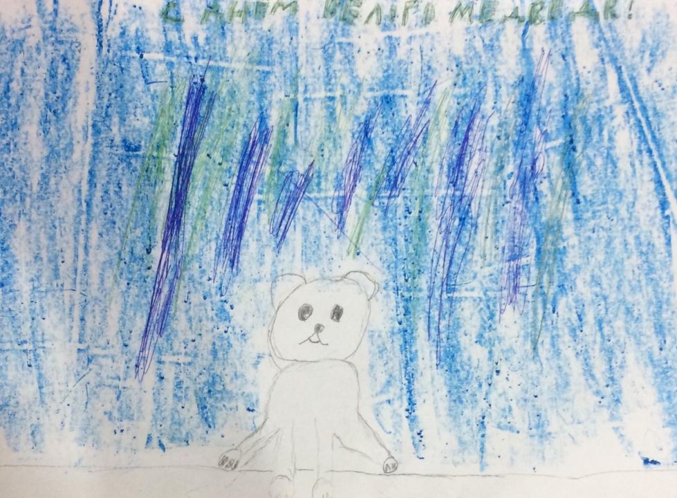 Белый медведь поздравляет Умку с праздником на фоне северного сияния!