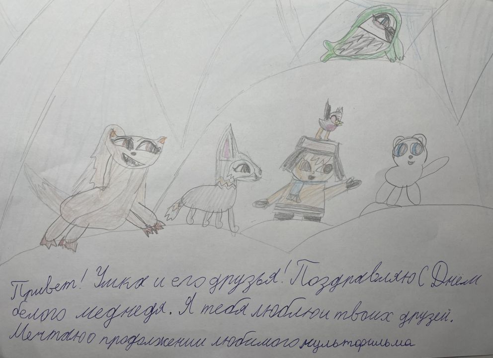 Я очень люблю мультфильм Умка, он очень интересный и трогательный. В моей работе изображена настоящая дружба, как друзья могут проводить вместе, играя в догонялки.