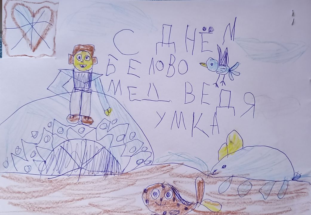 Друзья поздравляют Умку с Днём белого медведя. А чтоб письмо обязательно дошло до адресата, в углу нарисована самая сердечная марка )