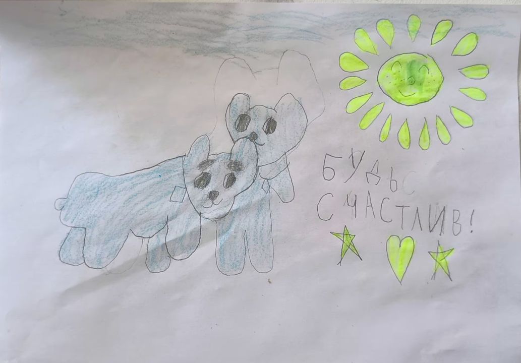 На этом рисунке изображены Умка и его мама. Они греются на солнышке среди заснеженных полей и желают всем вам быть самыми счастливыми! Милана очень старалась и хочет выиграть на конкурсе.