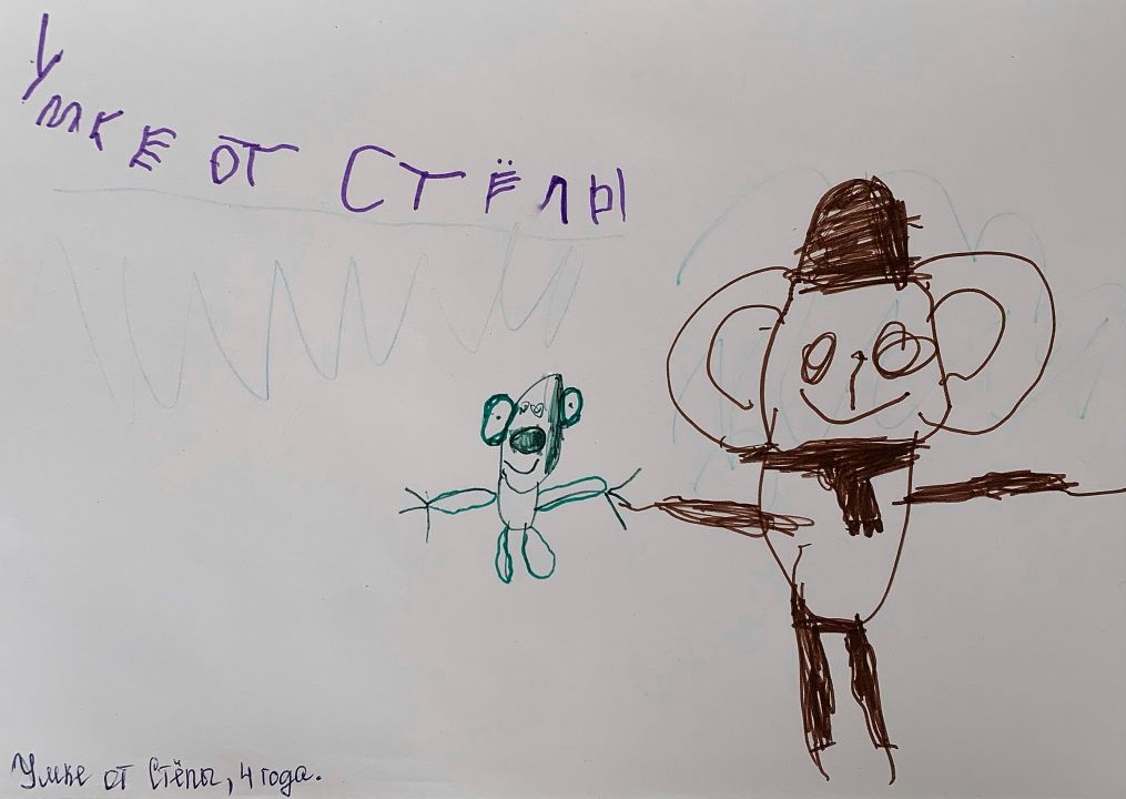 Степа увидел рекламу о конкурсе по телевизору.Сразу сел рисовать.На открытке слева Умка и его друг Тайкэ.Все нарисовал и написал самостоятельно.Вижу, что участие от 6лет.Но обещала отправить это Умке.