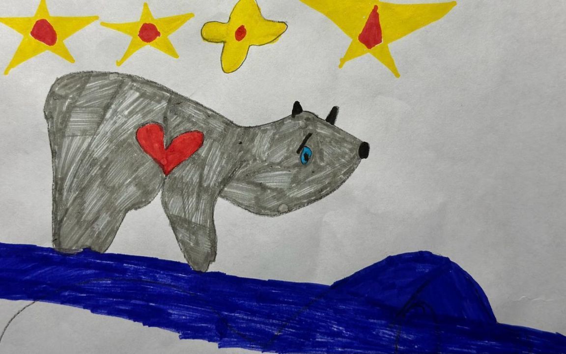 Это Умка, стоящий перед сугробом ночью. Я люблю Умку, поэтому принимаю участие в этом конкурсе.