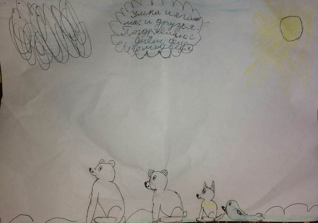 Я очень люблю белых медведей. С праздником, Умка!! На облачке написано поздравление от меня, доя белых медведей.