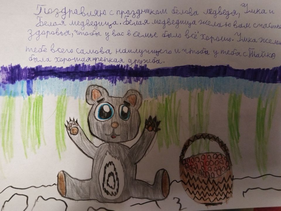 Я хочу поздравить Умку и маму медведицу с праздником. Мне хотелось изобразить именно медвежонка. Он такой милый.