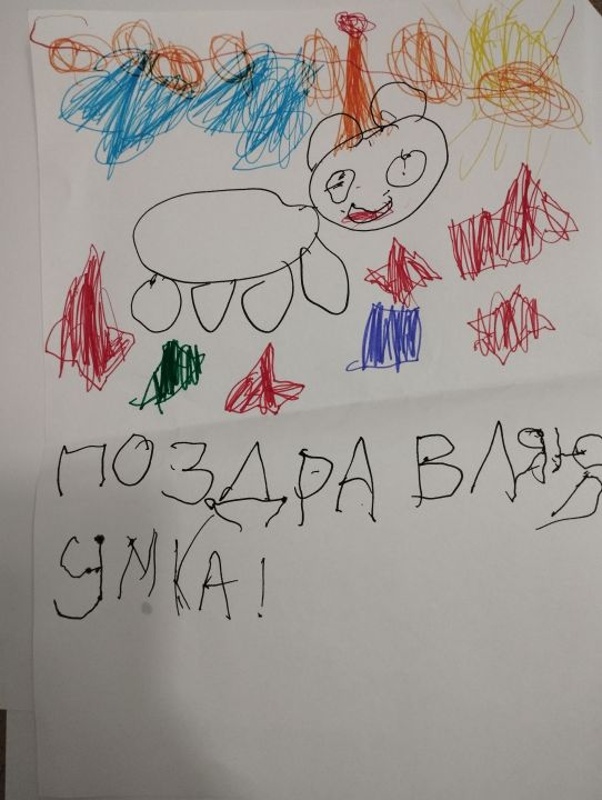 Я нарисовал Умку в День его рождения: в праздничном колпачке, среди разноцветных огоньков и подарков, веселого и счастливого!!!