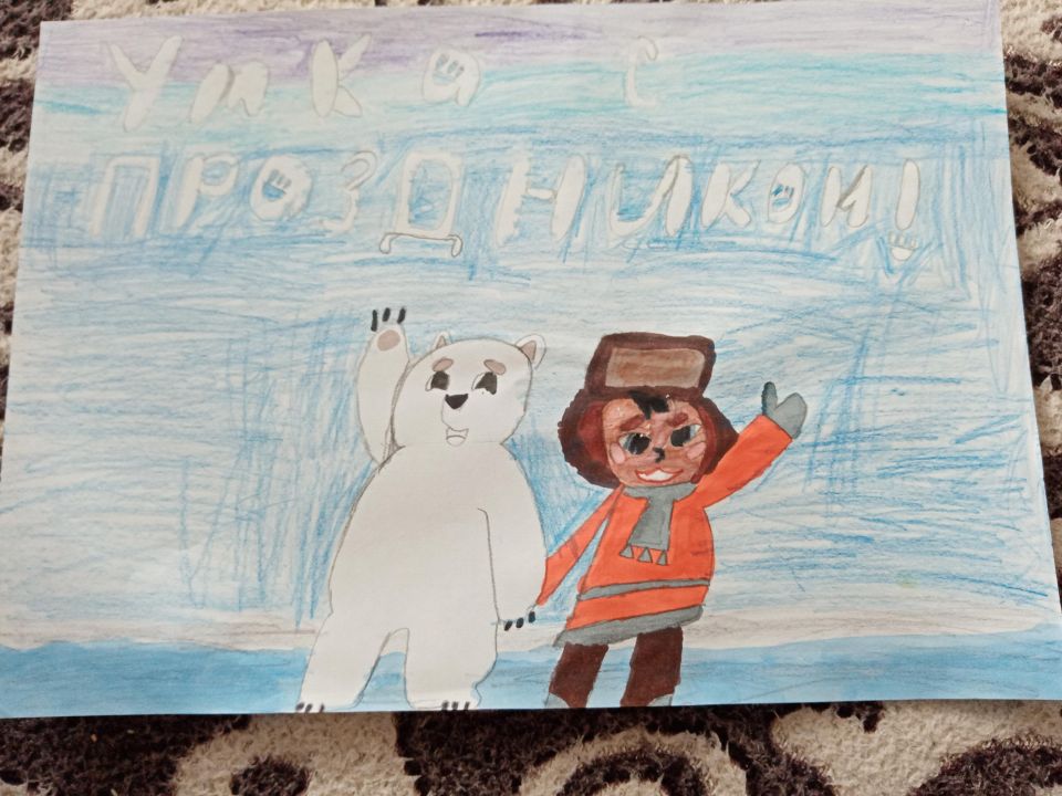 Я очень старалась. Хочу чтобы мой рисунок всем понравился. Мой любимый мультфильм "Умка" .