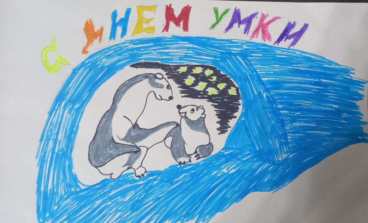 На рисунке представлена как Мама-медведица укладывает спать своего малыша Умку под всеми любимую колыбельную "Песенка Умки"