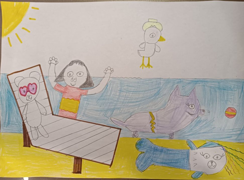 Умка и его друзья отправились в Анапу. Умка загорал на шезлонге, а другие купались и загорали на песке. Всем очень понравилось на море!