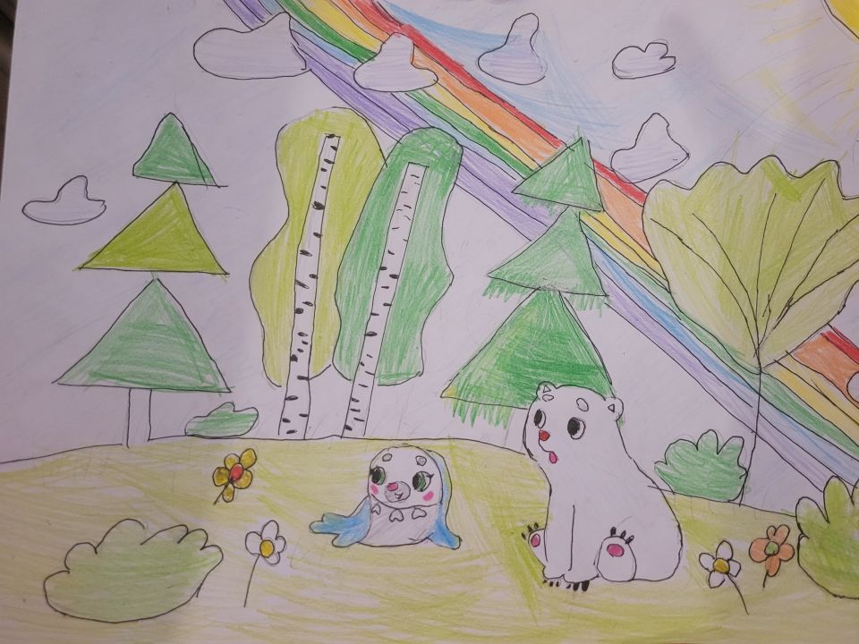 Умка впервые в лесу и всему очень удивляется. А её подруга Кора была уже здесь и показывает Умке интересные места.