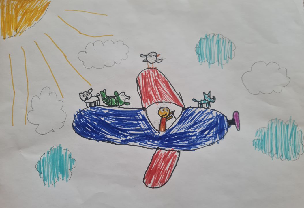 Умка сдрузьями летит на юг. Они будут отдыхать, загорать и купаться в море.