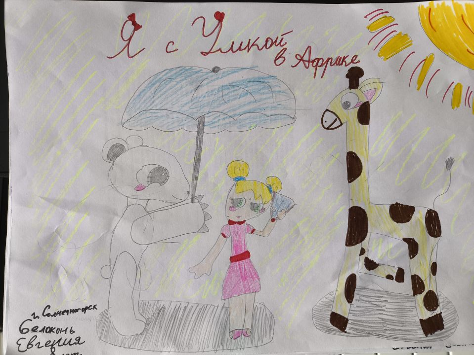 Умка отправился с девочкой Женей в зелёную и жаркую Африку, ведь он ни разу не видел таких теплых мест.