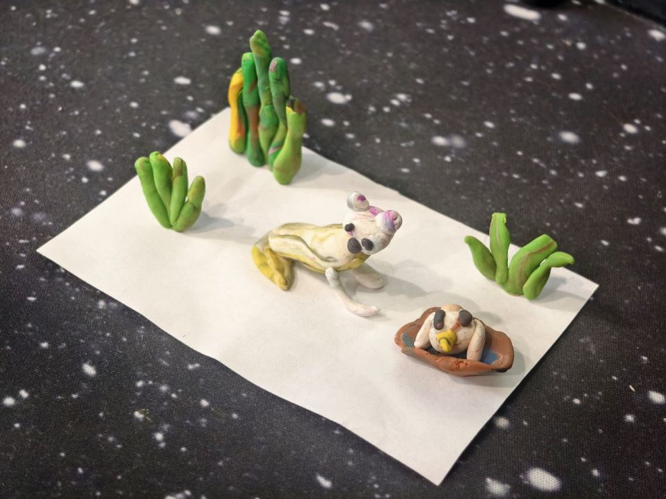 Летним днем Умка пошел погулять и встретил Пычика. Вся работа из пластилина.