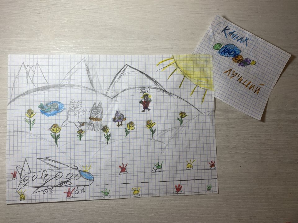 Умка со своими друзьями и со мной прилетели на самолёте в страну, где светит солнце, но там холодно- называется она Антарктида