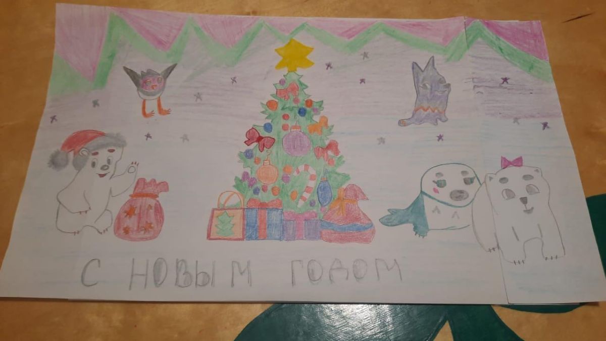 Я вдохновился мультфильмом"Умка и друзья", и решил собрать всех друзей Умки на одном рисунке. Как вместе отмечают Новый Год, дружно и весело, с подарками.