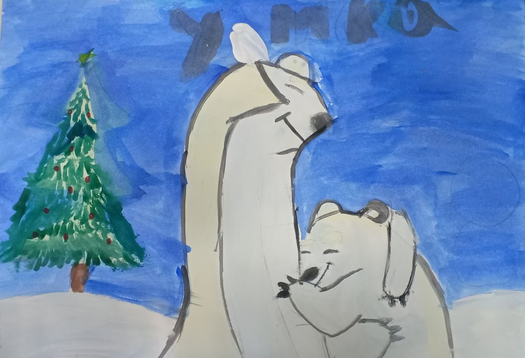 На моей работе изображена, как Умка с мамой встречают Новый год.