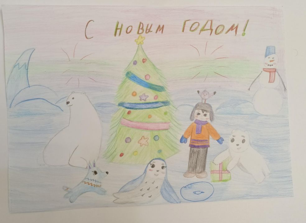 Новый год с Умкой! Красивая и чудесная елочка украшает льдины.