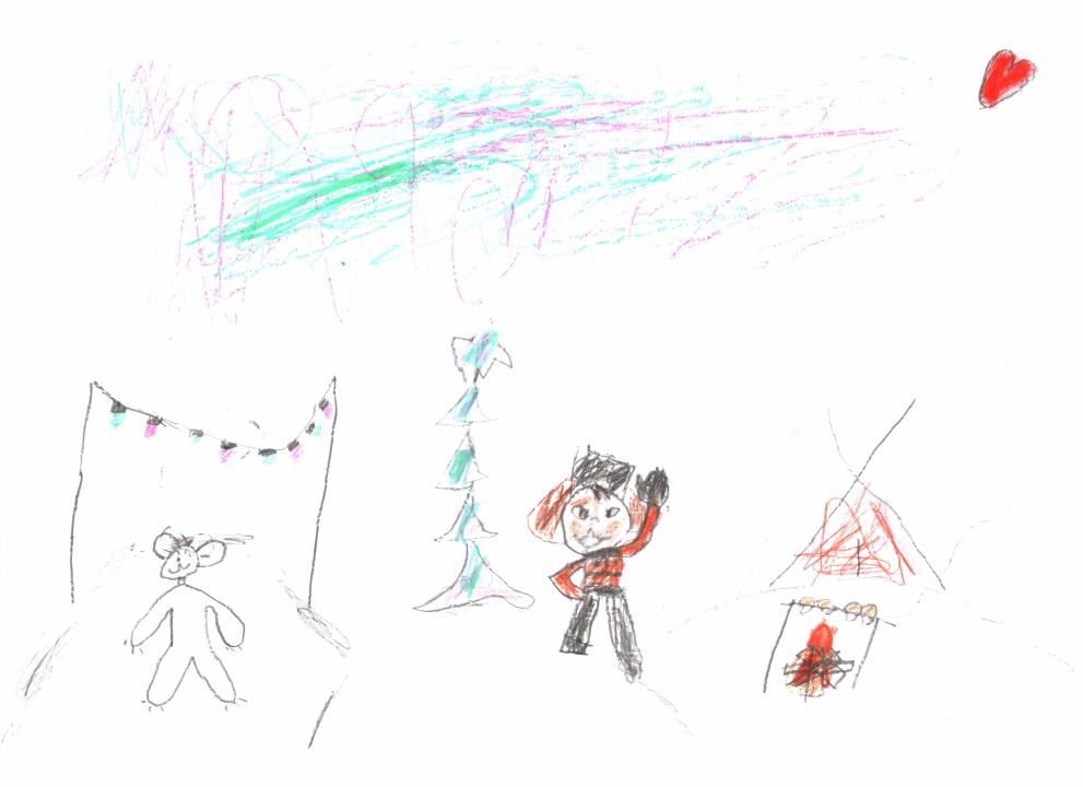 Умка с любопытством и удивлением рассматривал ёлочку, удивляясь яркости украшений и теплу праздничной атмосферы. Жанна дарила своим героям живую энергию, наполняя каждую деталь своей картины яркими чу