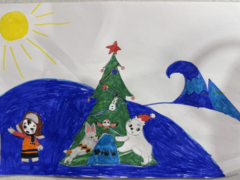 С Новым годом, Умка!!! Желаю, чтобы у тебя все было хорошо, с тобой всегда были друзья и они никогда не болели. Я нарисовала Умку и его друзей около елки.