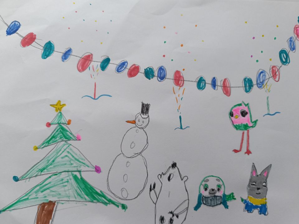 Очень люблю смотреть этот мультик. Нарисовал как Умка и его друзья ждут новый год.