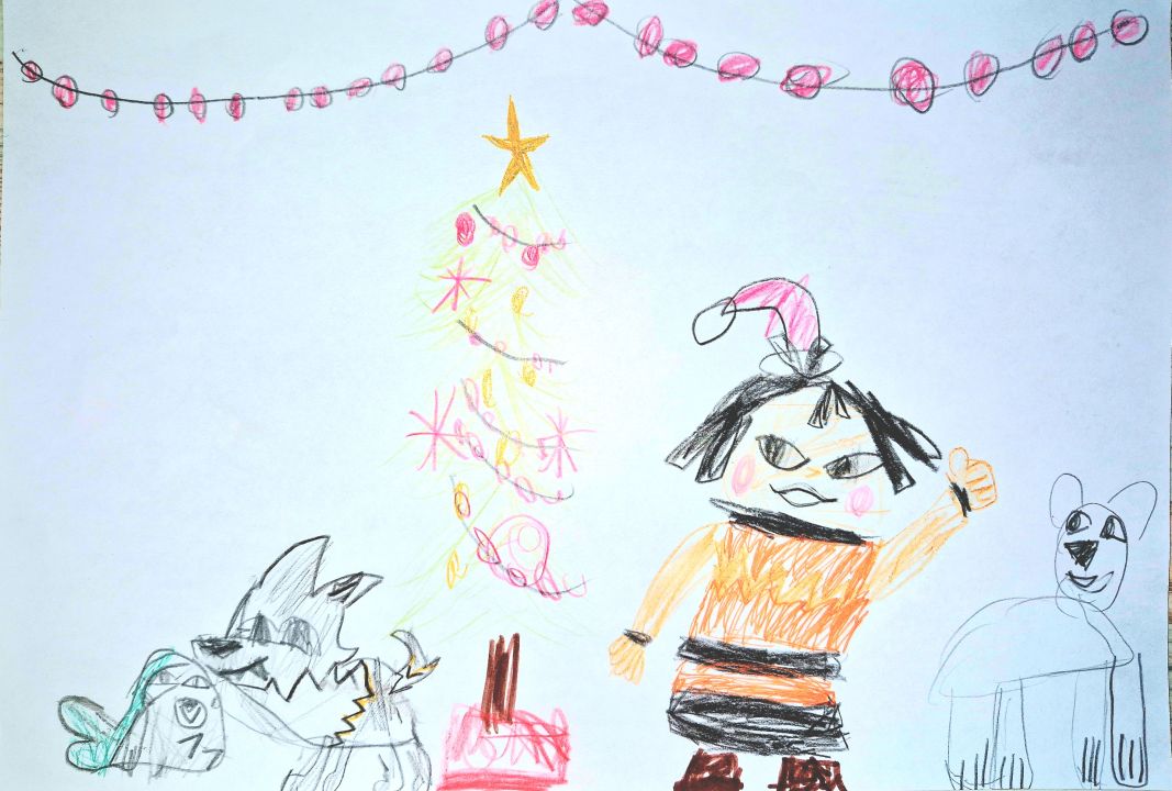 Я нарисовала Умку и всех его друзей возле новогодней ёлки